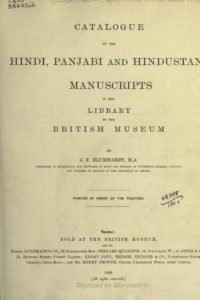 Catalogue Of Hindi Punjabi And Hindustani Manuscripts In The Library Of The British Museum