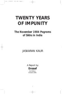 Twenty Years Of Impunity – The November 1984 Pogroms