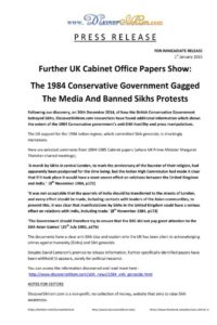 UK Cabinet Office Papers Show How The British (Conservative) Government Betrayed Sikhs In 1984-1985