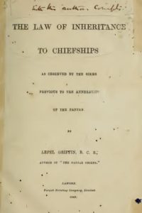 The Law Of Inheritance To Chiefships As Observed By The Sikhs Previous To The Annexation Of The Panjab